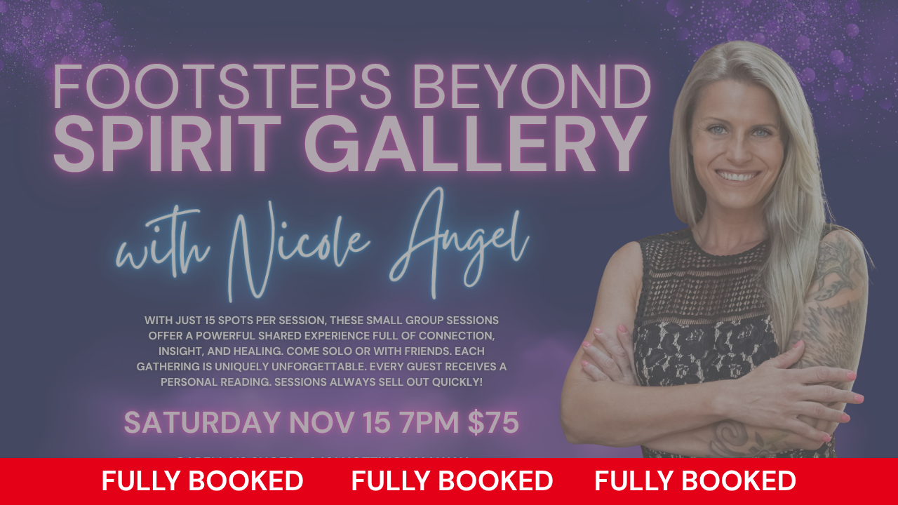 Her work focuses on bringing messages of love, guidance, and clarity to those seeking answers or reassurance. Whether she’s reading for intimate private sessions or leading group spirit galleries, Nicole’s ability to bridge the gap between worlds is both healing and empowering.